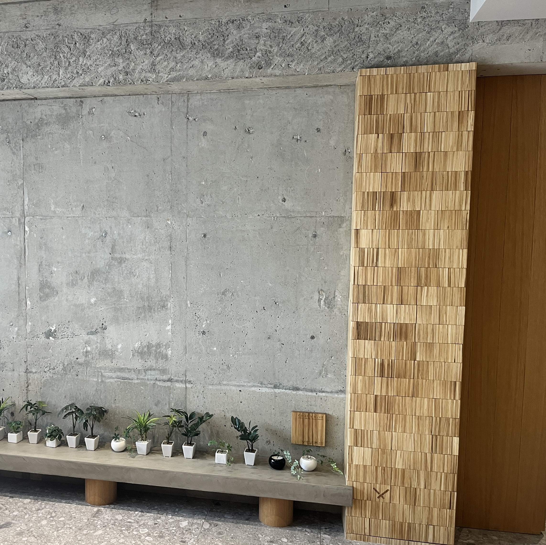 素材を提供してくださったのは、カナダ発のB Corp認証企業 ChopValue。同社は世界で年間何十億本と消費される割り箸を都市の“未利用資源”と捉え、独自の高密度複合材として家具や建材に再生する循環型モデルを展開しています。2024年には日本でもマイクロファクトリーが立ち上がり、近隣飲食店から回収した割り箸が建材へと生まれ変わっています(参考:ChopValue Japan)。